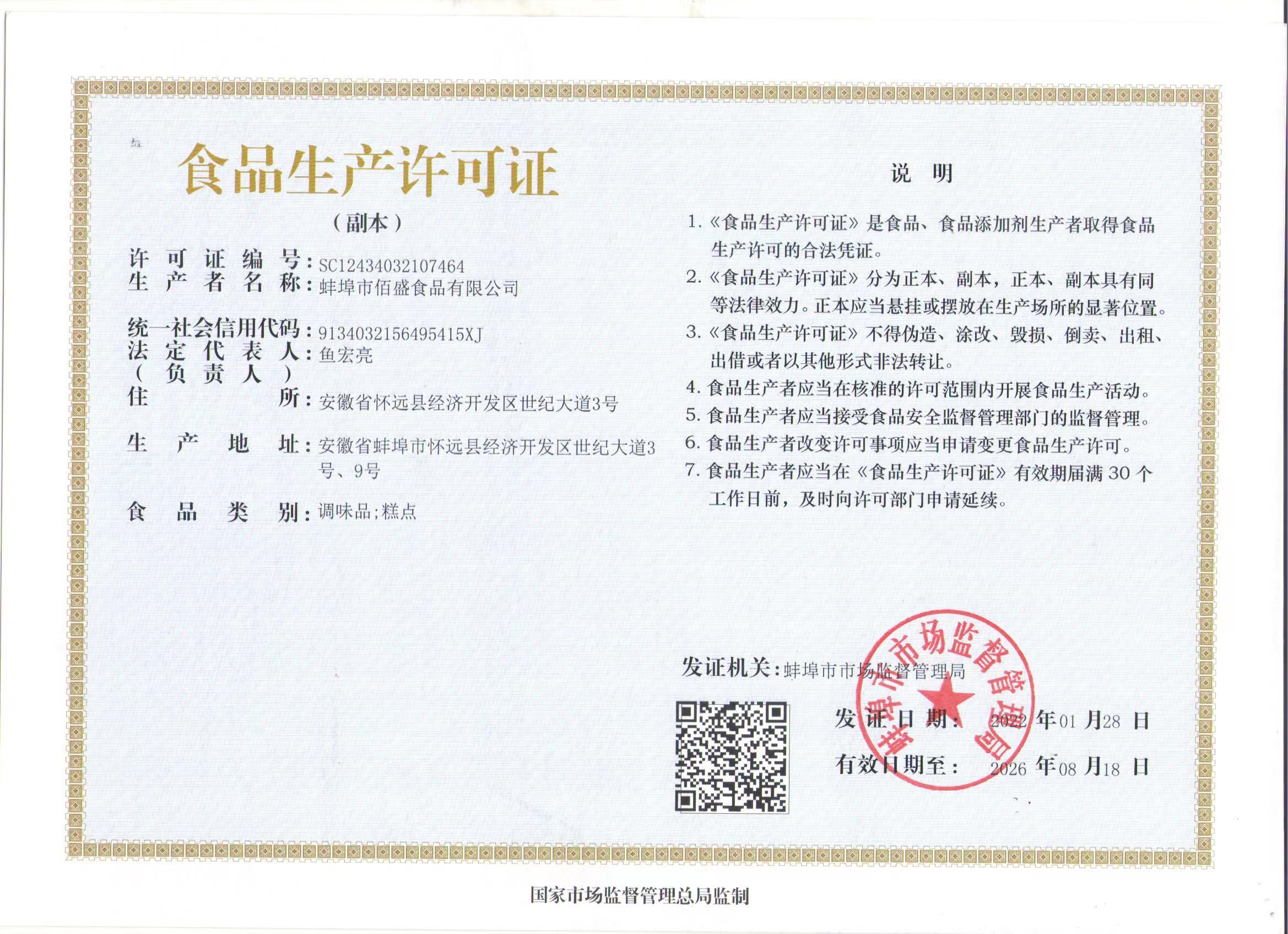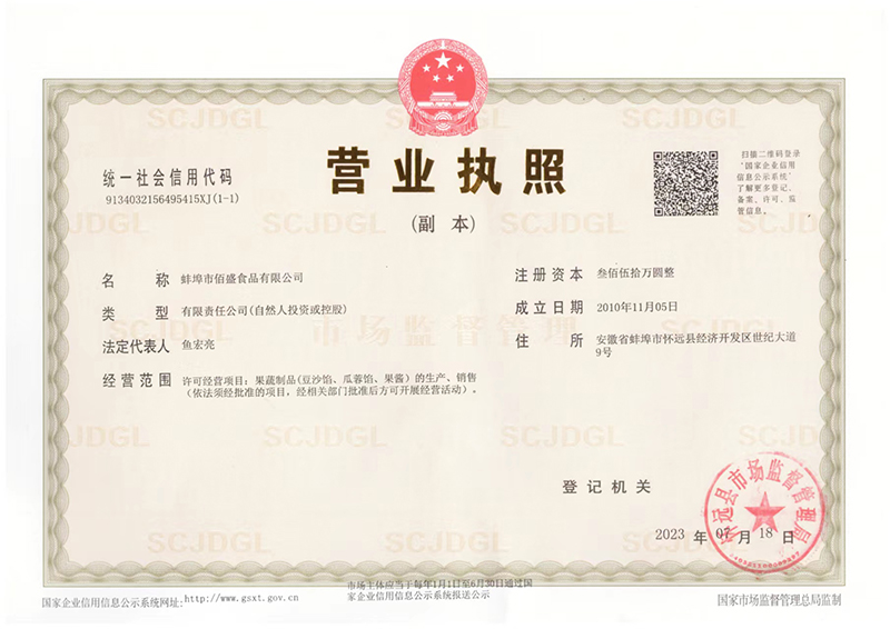 蚌埠市佰盛食品有限公司 版權所有 免責聲明 皖ICP備2021010071號-1 食品生產許可證 營業執照